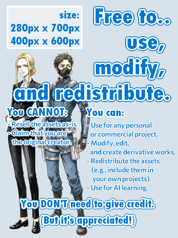 As detailed in the screenshots, all images are provided as pre-sized, transparent PNGs at a relatively small resolution. They are optimized for use in Virtual Tabletops (VTTs). Please note: The resolutions are specifically optimized for "Cocofolia," a popular VTT service in Japan. While they should work in other VTTs, your mileage may vary.